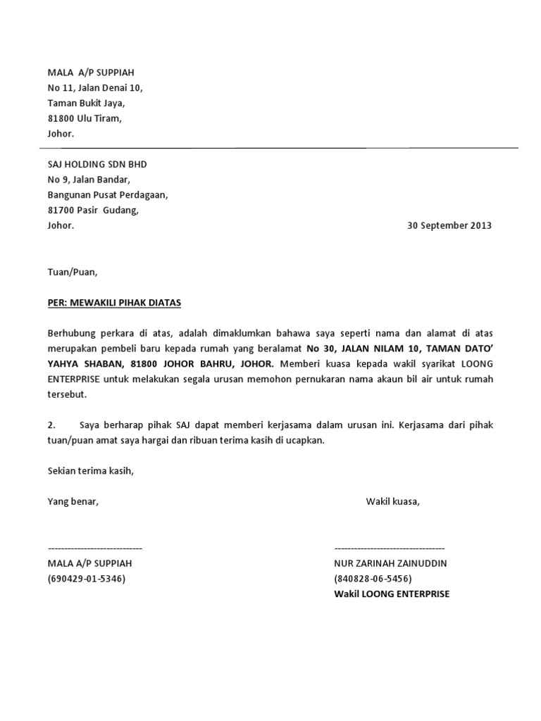 Contoh surat wakil syarikat untuk lhdn. Contoh Surat Memberi Kuasa Itulah beberapa contoh surat kuasa yang bisa kami berikan semoga dengan surat kuasa ini permasalahan anda akan lebih mudah untuk menjalaninya. Secara definisi Surat kuasa adalah surat yang memberikan wewenang kepada pihak lain pemegang surat untuk melakukan sesuatu yang menjadi hak penulis surat.