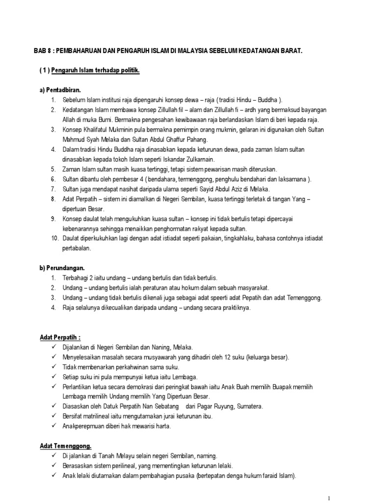 Bab 8 Pembaharuan Dan Pengaruh Islam Sebelum Kedatangan Barat Pdf