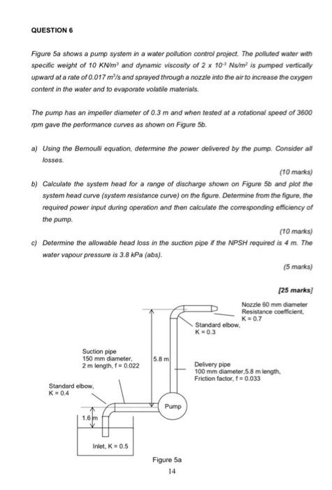 Solved Question 6 Figure Sa Shows A Pump System In A Water Chegg Com