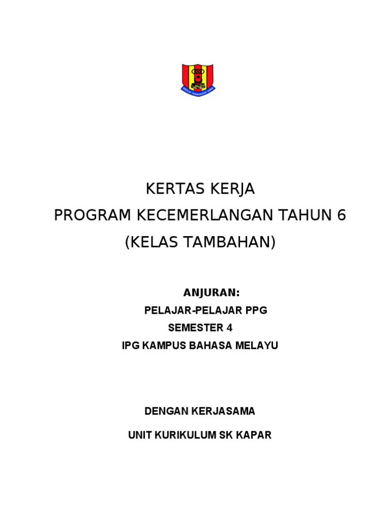 Kertas Kerja Kelas Tambahan Sk Kapar Pdf