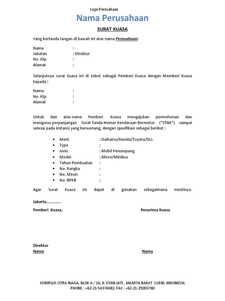 Contoh Surat Kuasa Perpanjang Stnk Mobil Perusahaan Pdf