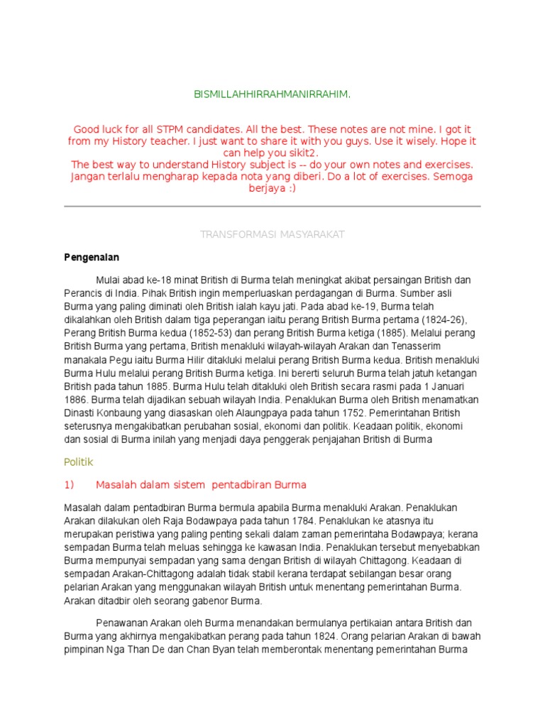 Stpm sejarah sebab-sebab penentangan masyarakat myanmar terhadap kuasa british. Nilaikan penentangan dan sebab-sebab penentangan terhadap kuasa asing di negeri Kedah terhadap Siam pada 1821-1842. Perluasan kuasa Belanda di Indonesia dan British di Myanmar membawa kepada beberapa bentuk penentangan tempatanMasyarakat tempatan menentang kuasa asing atas sebab-sebab tertentu dalam bidang politik ekonomi dan sosial. Pendahuluan Pada abad ke-19 hingga abad ke-20 masyarakat tempatan telah bangun menentang kuasa asing di negeri-negeri Melayu Sabah dan Sarawak.