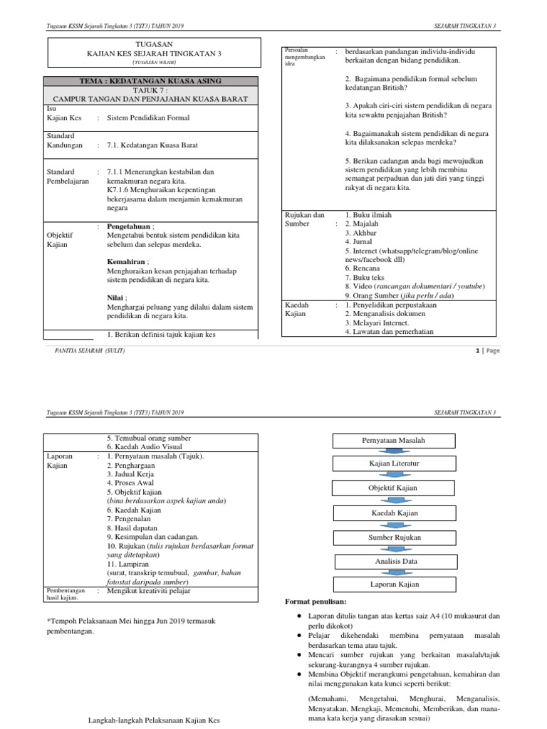 Sejarah Tingkatan 3 2019. 9 2019 TUGASAN SEJARAH TINGKATAN 3 30 Pelaporan 36 markah Ditulis dalam kelas 31 Pengenalan definisi ¾ muka surat Sekurang-kurangnya 3 perenggan 32 Pendidikan sebelum kedatangan British 1 muka surat penuh - tulisan sederhana saiz font 14. SEJARAH KSSM TINGKATAN 3.
