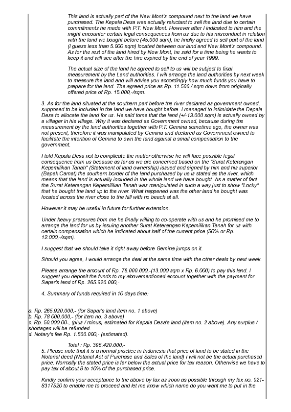 Walaupun pembayaran belum lunas pemilik tanah sudah membolehkan developer mengelola tanahnya dengan deal tertentu.