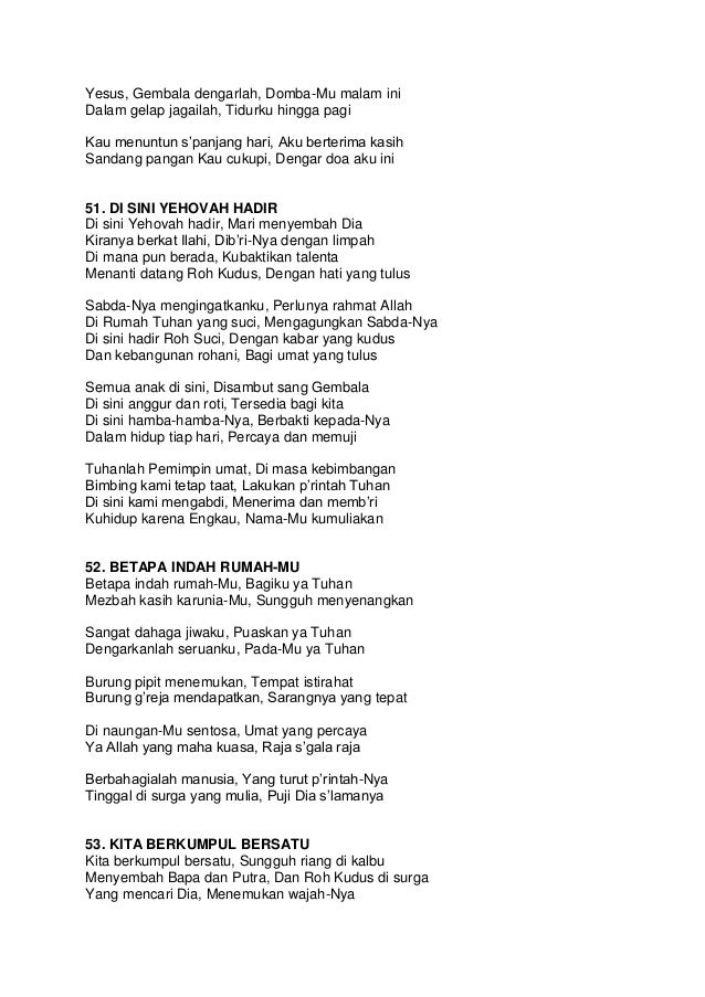 Share to Twitter Share to Facebook Share to Pinterest. Yamuger Suci suci suci Tuhan Maha Kuasa Dikau kami puji di pagi yang teduh Suci suci suci murah dan perkasa Allah Tritunggal agung namaMu Suci suci suci. Surga dan bumi milik Tuhan.