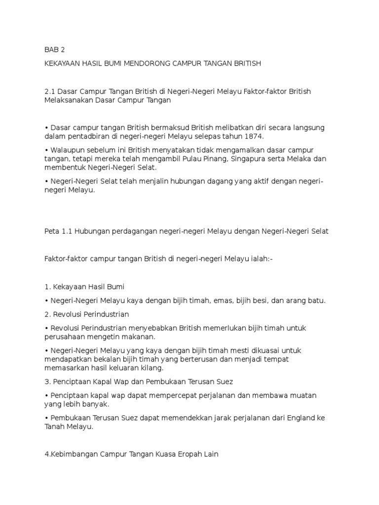 Download Sejarah Tingkatan 3 PDF for free. - Diberi hak monopoli dalam perdagangan rempah di Kepulauan Melayu oleh Kerajaan British. KEKAYAAN HASIL BUMI MENDORONG CAMPUR TANGAN BRITISH 1 Sebab British di Negeri-negeri Melayu a Dasar Campur Tangan British 1.