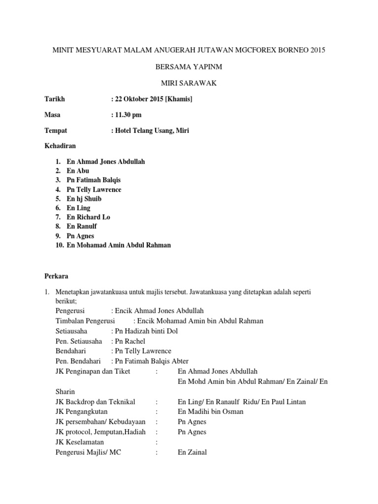 Minit Mesyuarat Majlis Makan Malam Gala Mgcforex Pdf